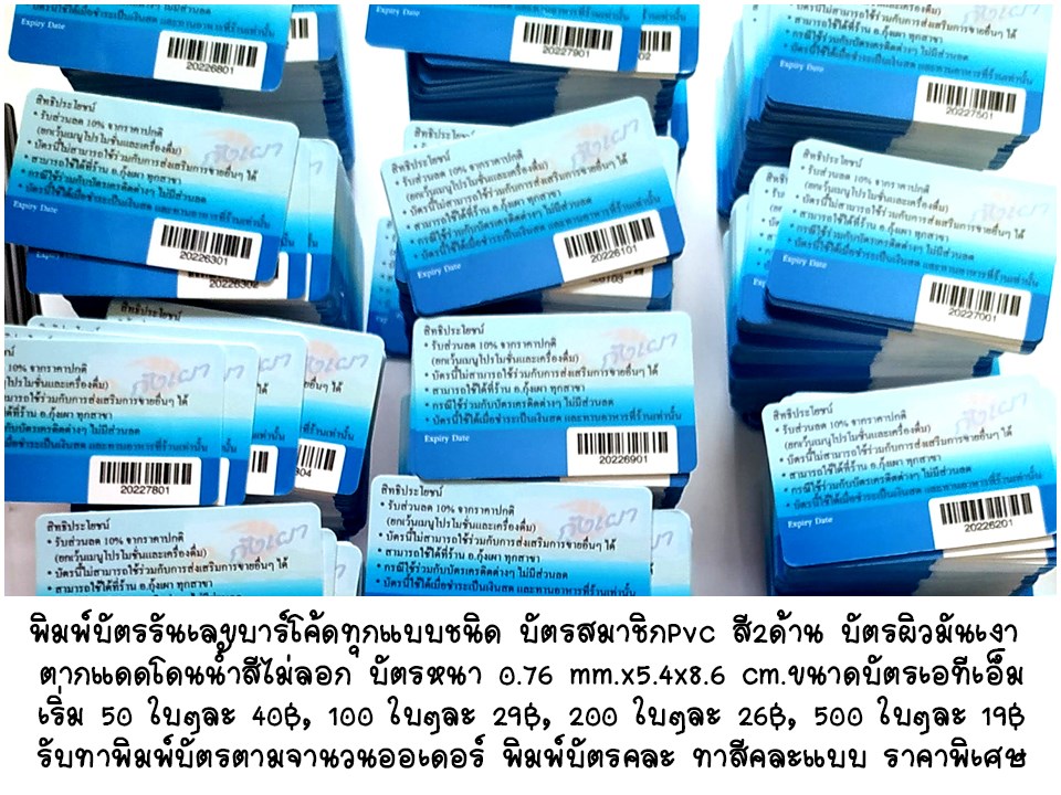 รับทำบัตรสมาชิกใบเล็กป้ายแท็ก รับทำบัตรสมาชิก พื้นผิวมันเงา รับทำบัตรรันเลขไม่ซ้ำ บัตรคิวทุกแบบ รับทำบัตรรันรหัสบาร์โค๊ด ทุกรูปแบบ